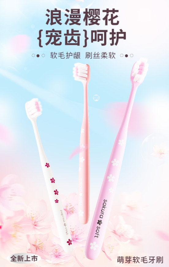 樱花系列成人牙刷3支装柔软刷丝电商跨境热卖摆摊品